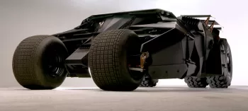 O modelo conhecido como Tumbler, utilizado pelo personagem Batman na trilogia Cavaleiro das Trevas, é conhecido por sua aparência que lembra a de um tanque de guerra. A réplica à venda possui 4,66 metros de comprimento, 2,83 metros de largura e pesa cerca de 2.500 kg. Para suportar o peso e garantir estabilidade, o Batmóvel foi equipado com pneus de 15 polegadas na frente e 18,5 polegadas na traseira, além de freios a disco elétricos em todas as rodas.